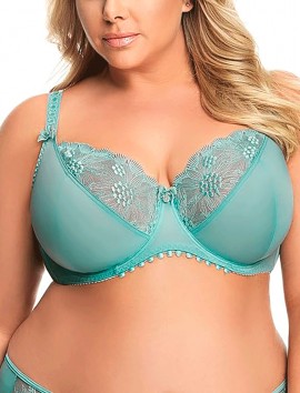 Sujetador de la marca Gorsenia modelo Laguna de color verde agua con encaje floreado en tres colores.