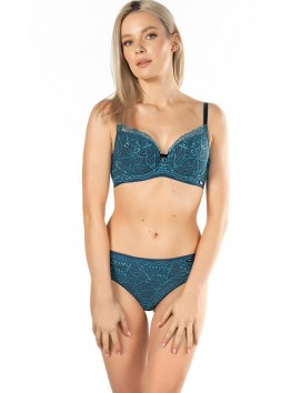 Sujetador preformado dolores confeccionado en encaje floral de color petroleo sobre fondo azul marino,con un ligero push up extraible.