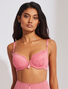 Sujetador preformado con aro confeccionado en un precioso encaje de color rosa fresa de la marca selmark.
