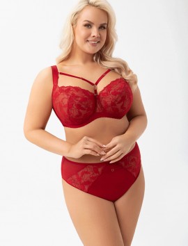 La braga alta Gorsenia Amira K960 en rojo combina encaje y transparencias seductoras, aportando sujeción, estilo y un toque irresistible. Si no encuentras tu talla llámanos al 655244402 y pregúntanos. ¡Puede que te la consigamos!
