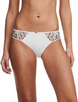 Braga Fleurs de Chantelle, en color marfil, con tul transparente en los laterales de la braga con flores bordadas en negro y blanco.