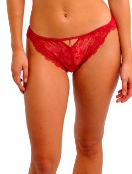Tanga Fascinate de Freya (AA403170CHR) en rojo. Encaje floral, transparencias y un color intenso que eleva cualquier conjunto. Ideal para combinar con el sujetador Fascinate de gran capacidad.