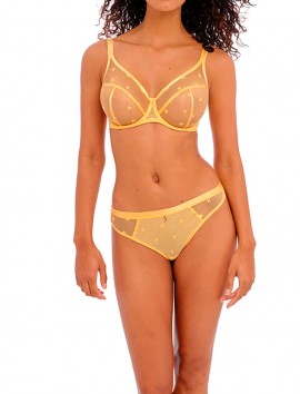 Sujetador sin relleno en tul semitransparente con estrellas bordadas de la marca freya.