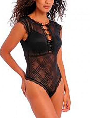 Body tanga de la marca freya confeccionado todo en un precioso encaje negro.