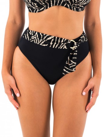 Braga alta negra Silhouette de Fantasie, con cinturon estampado en negro y crema.