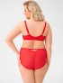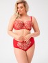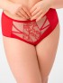 Braga en color rojo con detalle frontal, de tul con bordado y tiras con detalles metálicos en color oro rojo.