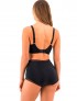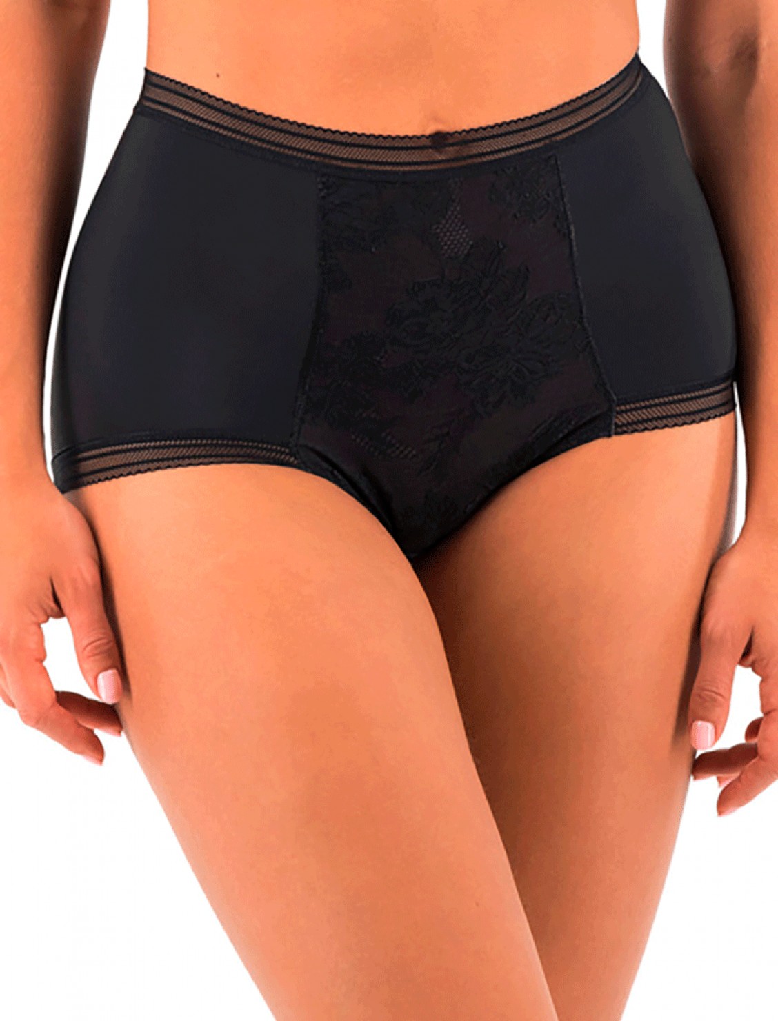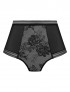 Braga fusion lace de fantasie de talle alto, confeccionada en licra y tul con estampado floral en color negro.