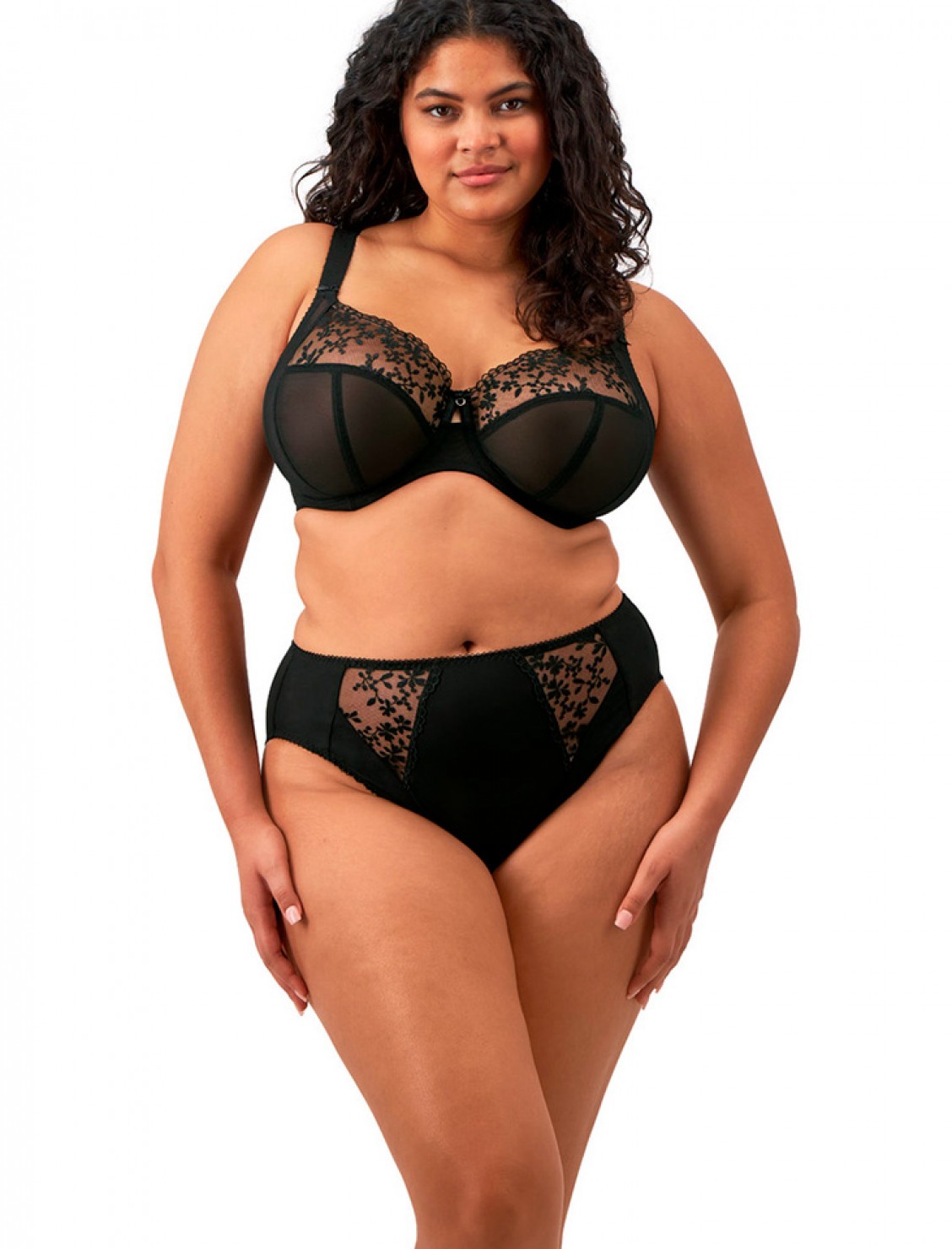 Braga de corte clásico de la marca elomi confeccionada en tejido de tul semitransparente con detalle floral en los laterales.