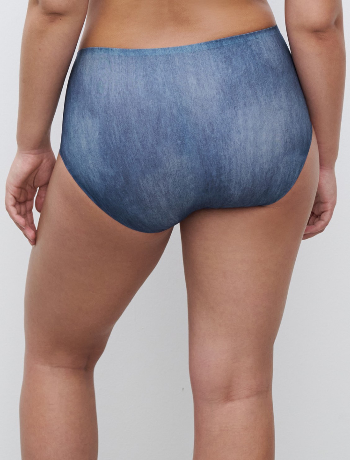 Braga alta sin costuras que cubre muy bien vientre, caderas y nalgas. Su tejido es extremadamente suave y agradable al tacto. Estampado blue jeans.