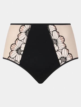 La braga alta Chantelle Lush Black C22OC5-A38 destaca por su bordado floral, su doble tejido suave y sus bordes remarcados en negro que realzan la figura.