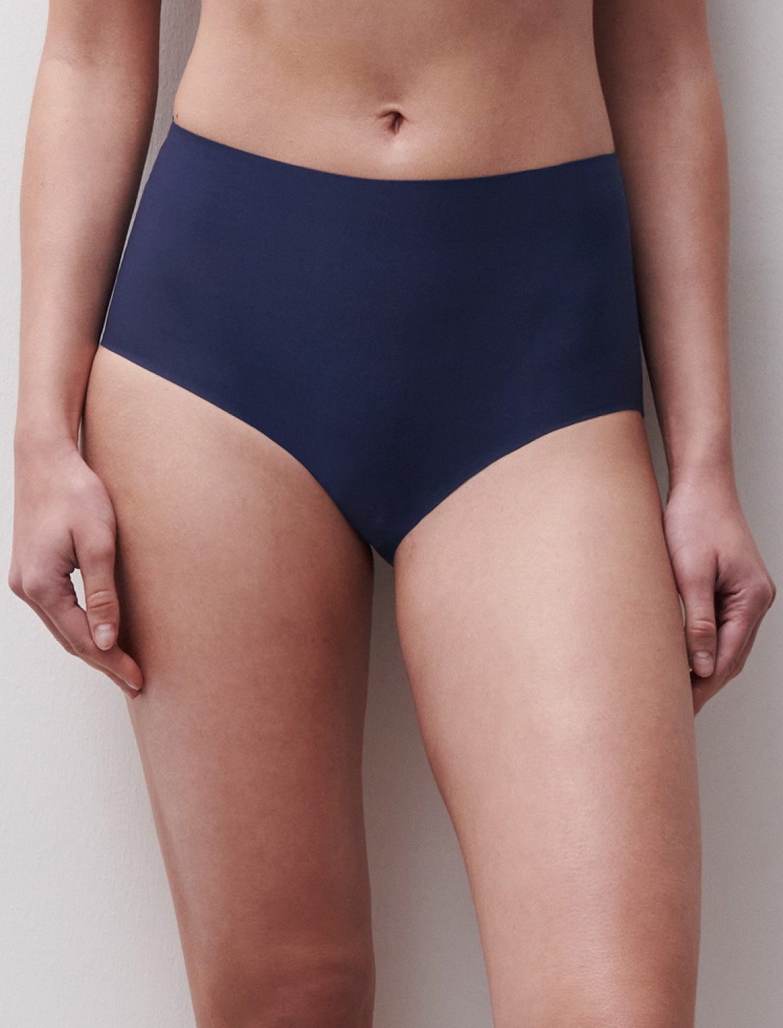Braga alta C26470-023 de Chantelle en azul noche. Tejido suave, ajuste perfecto y una cintura que recoge sin apretar. Elegancia y confort unidos en una braguita pensada para el día a día.