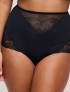 Talle alto con encaje parcial y tiras cruzadas traseras. Una prenda que estiliza y seduce al mismo tiempo.
