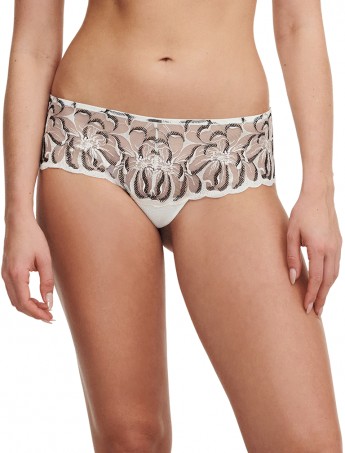Culotte Fleurs de Chantelle, en tul transparente color marfil, bordado de flores en blanco y negro.