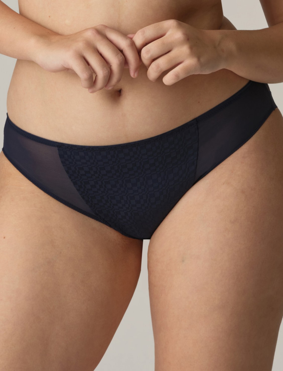 Braga Yelapa en marino de PrimaDonna Twist, con tul transparente en los laterales y tejido muy suave con relieve en la parte central.
