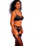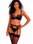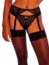Liguero de freya confeccionado en un precioso encaje negro y con detalle de lazo con un apiedra brillante.