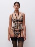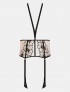 Liguero de freya confeccionado en un precioso encaje negro y con detalle de lazo con un apiedra brillante.