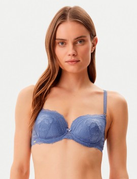 Sujetador preformado con aro confeccionado en un precioso encaje de color azul de la marca selmark.