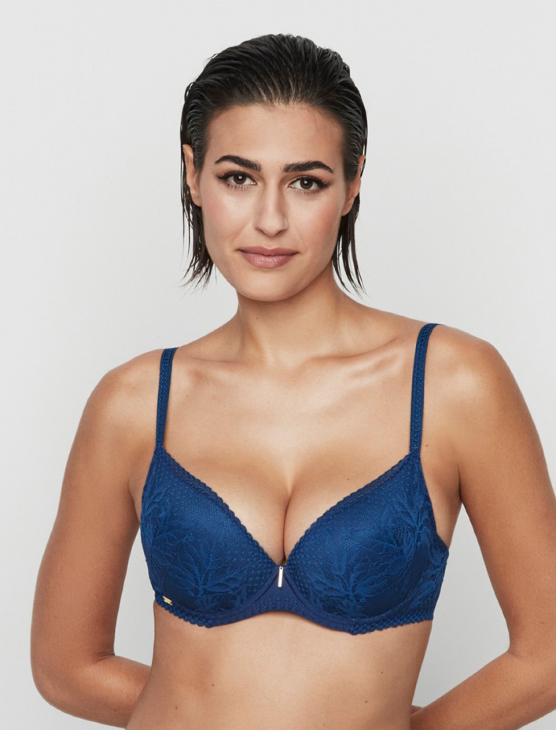 Sujetador push up Malitzia de Selmark (61213) en azul. Con copas preformadas que elevan y realzan el pecho, ofrece volumen extra, sujeción perfecta y un estilo sofisticado.