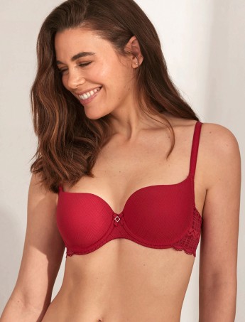 SUJETADOR PREFORMADO ROJO ALICIA DE LA MARCA SELMARK, CON UN BONITO ENCAJE LATERAL.