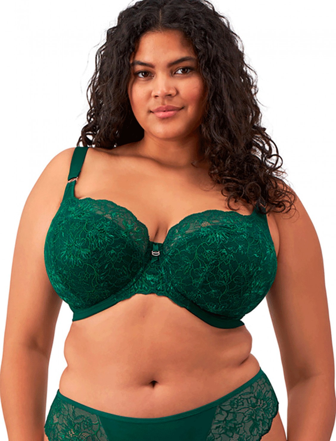 Sujetador Brianna de Elomi, con encaje floral, con aro y semirelleno en verde.