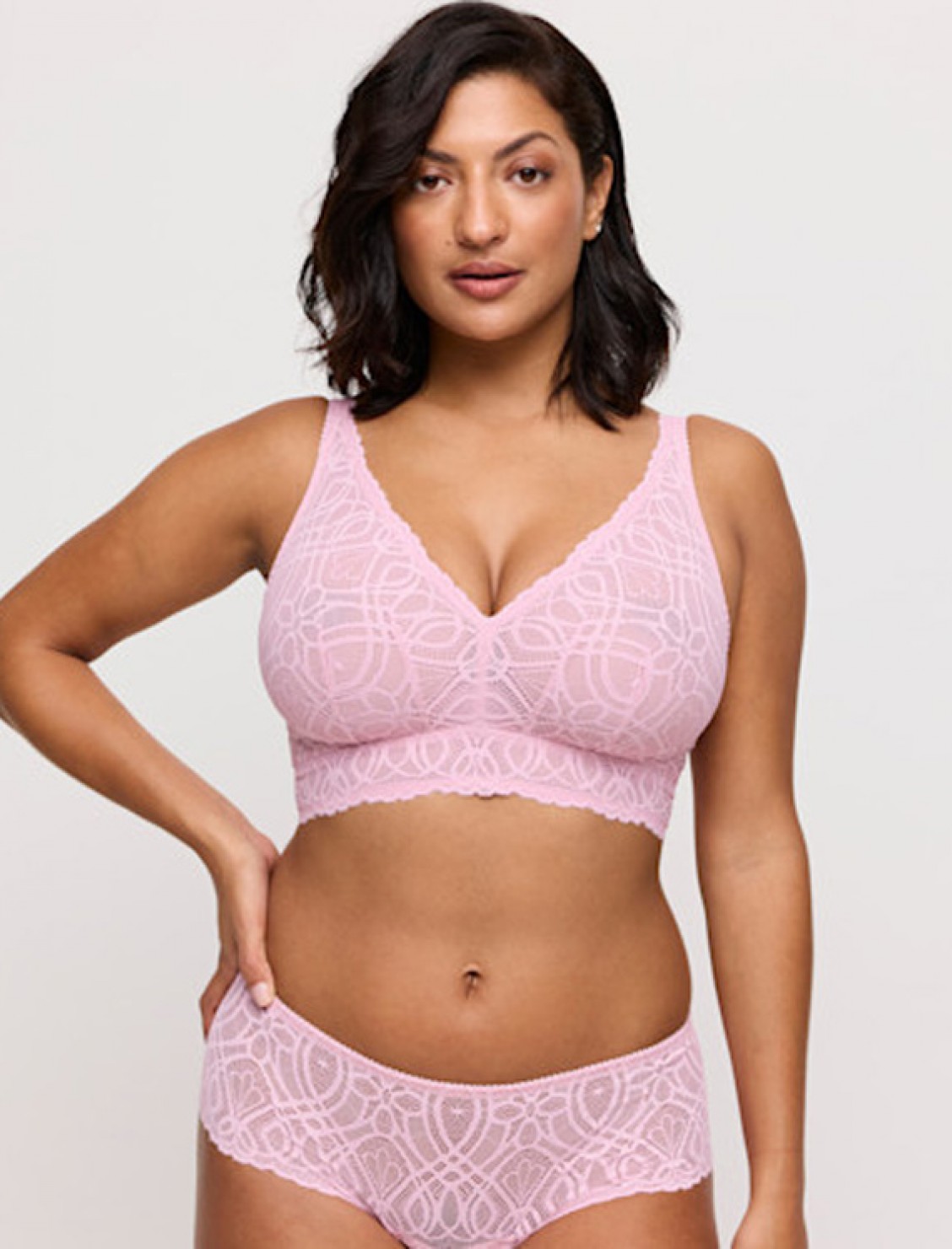 Sujetador sin aro Salerno 0163536 de PrimaDonna en rosa. Copas suaves, encaje floral y sujeción perfecta sin aros. Comodidad y estilo para todos los días.