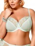 Sujetador de la marca Gorsenia modelo Laguna de color verde agua con encaje floreado en tres colores.