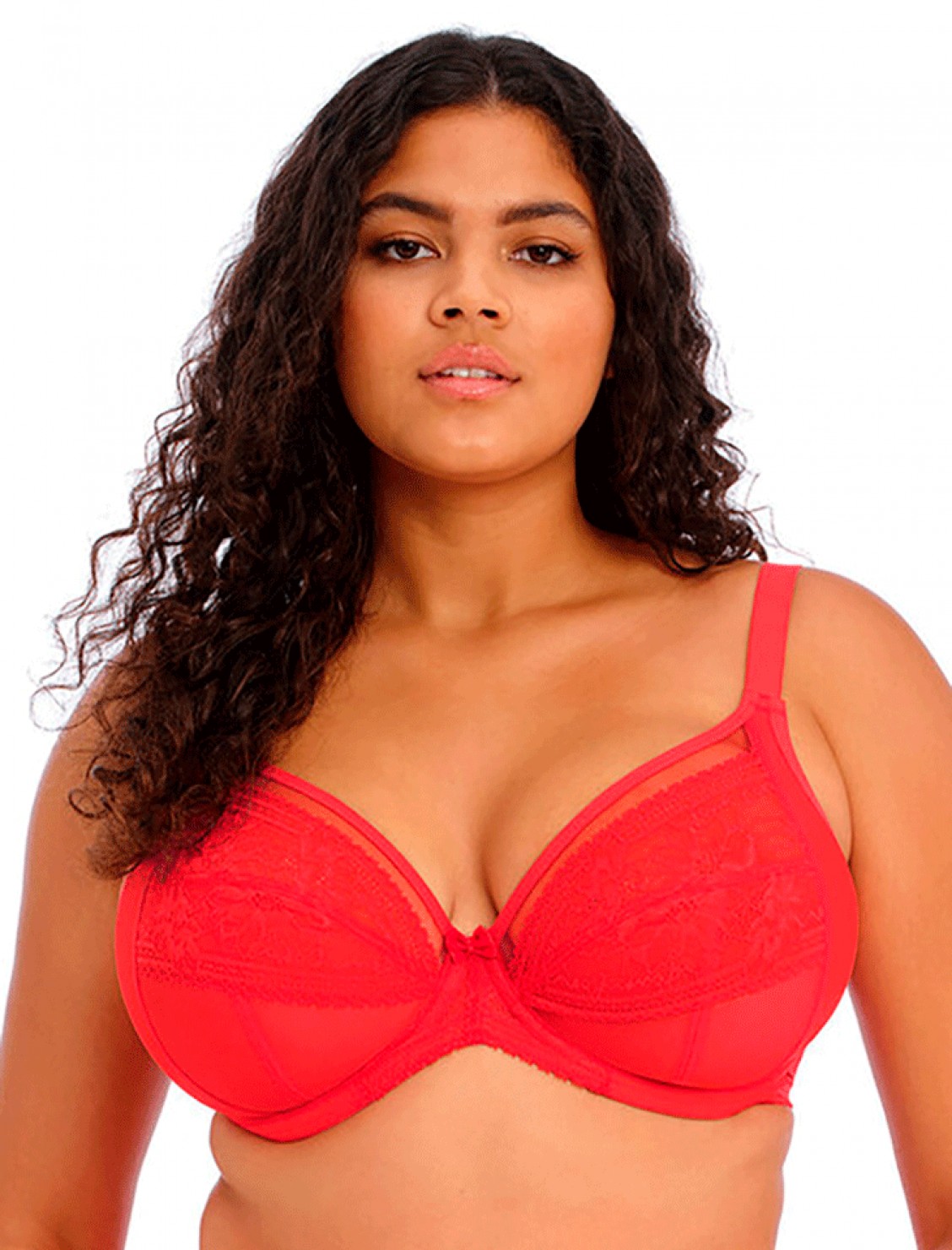 Sujetador kendra de elomi, sin relleno y con aros, color rojo con encaje y tul.