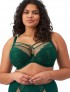 Sujetador verde sin relleno con encaje y tirantes de adorno en el pecho.