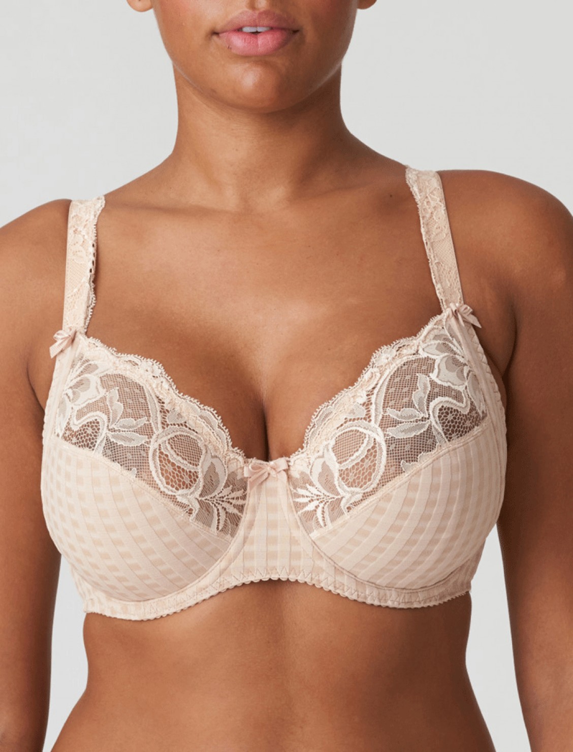 Sujetador sin relleno, tejido suave y con encaje en parte superior.