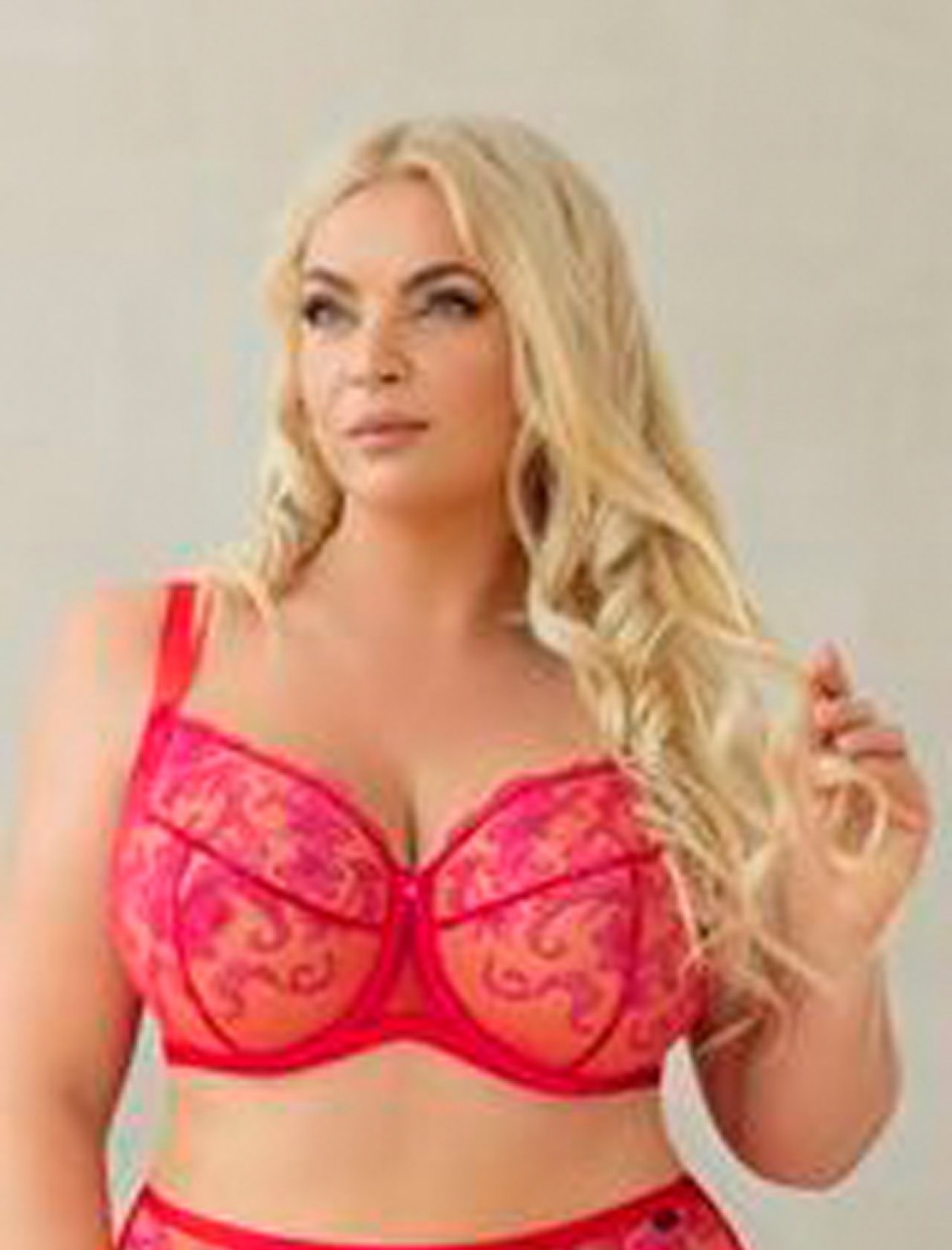 El diseño en rosa y rojo es puro atrevimiento. Femenino sin caer en lo ñoño. Potente sin perder elegancia. Pero lo realmente importante está dentro: estructura reforzada, copas pensadas para pecho grande, tirantes firmes y acabados suaves que recogen, moldean y levantan. Todo eso sin apretar ni incomodar.