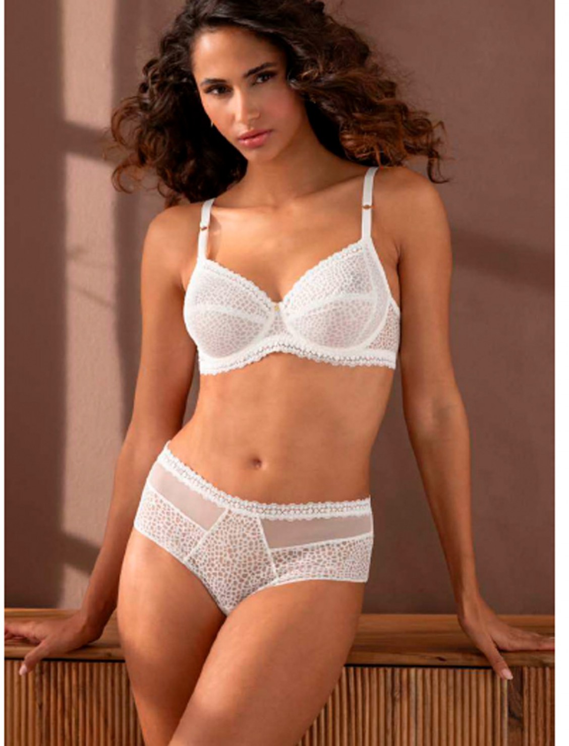 El sujetador exquise en dentelle FCJ6147E de Antigel en blanco es de esos que no necesitas esconder. Porque además de sujetar, embellece, acompaña y hace que te sientas bien vestida por dentro.
