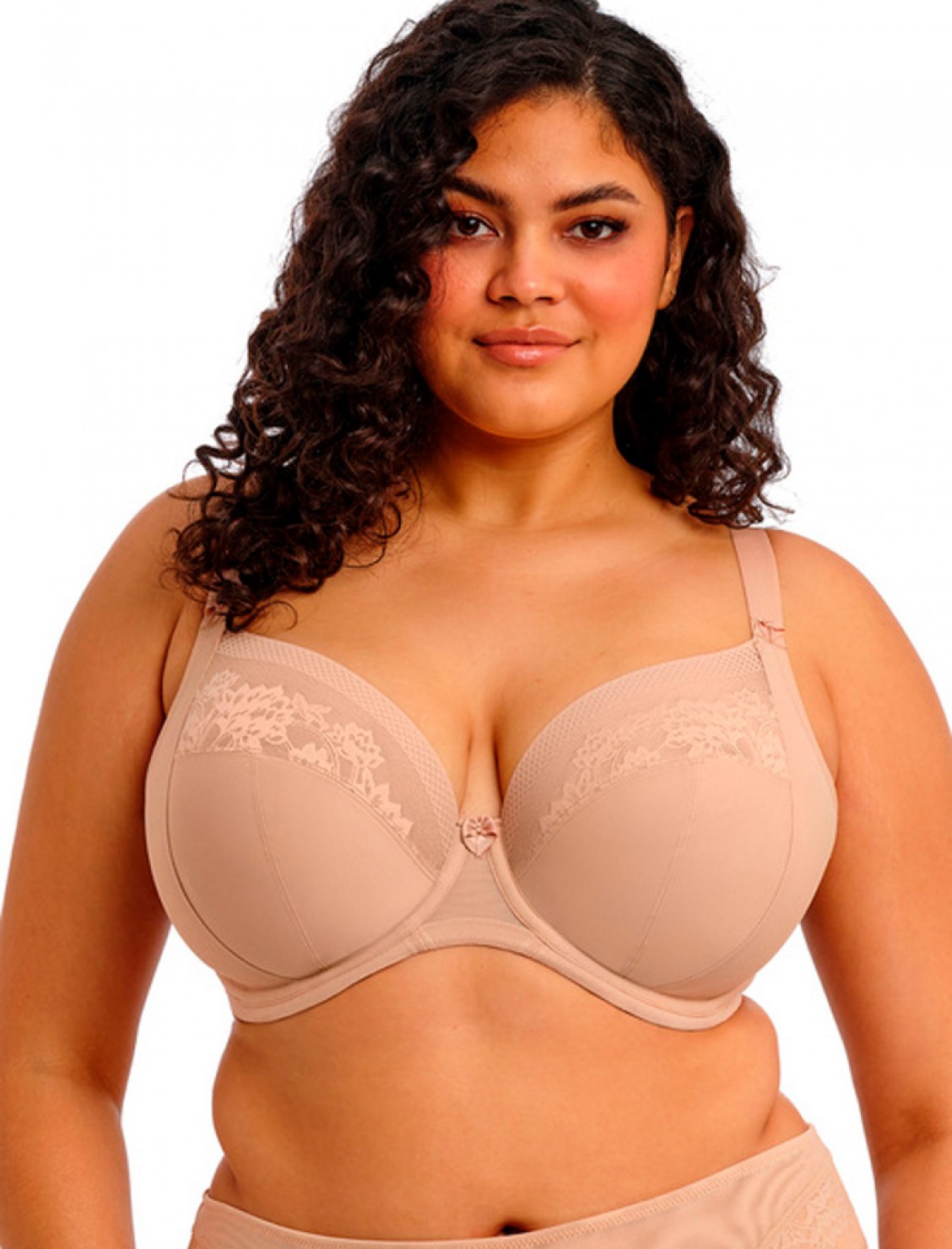 Sujetador Nerina de Elomi (EL302734SAH) en Dune. Sujeta, eleva y envuelve con encaje suave y copa sin relleno. Ideal para pecho generoso que busca sujeción sin renunciar al estilo.