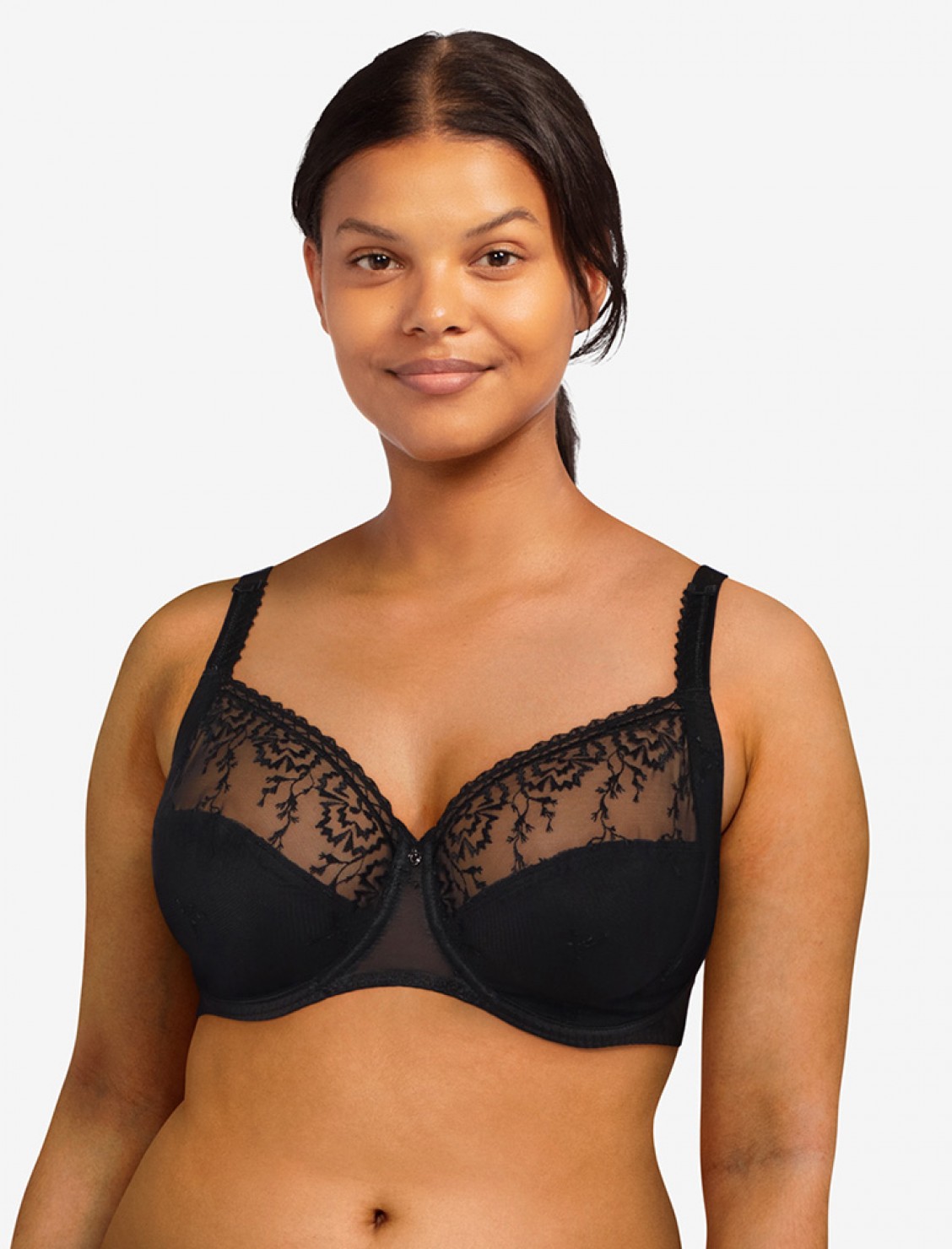 El sujetador Chantelle Every Curve C16B10-011 negro combina bordado delicado y transparencias sutiles, con una sujeción firme y elegante.