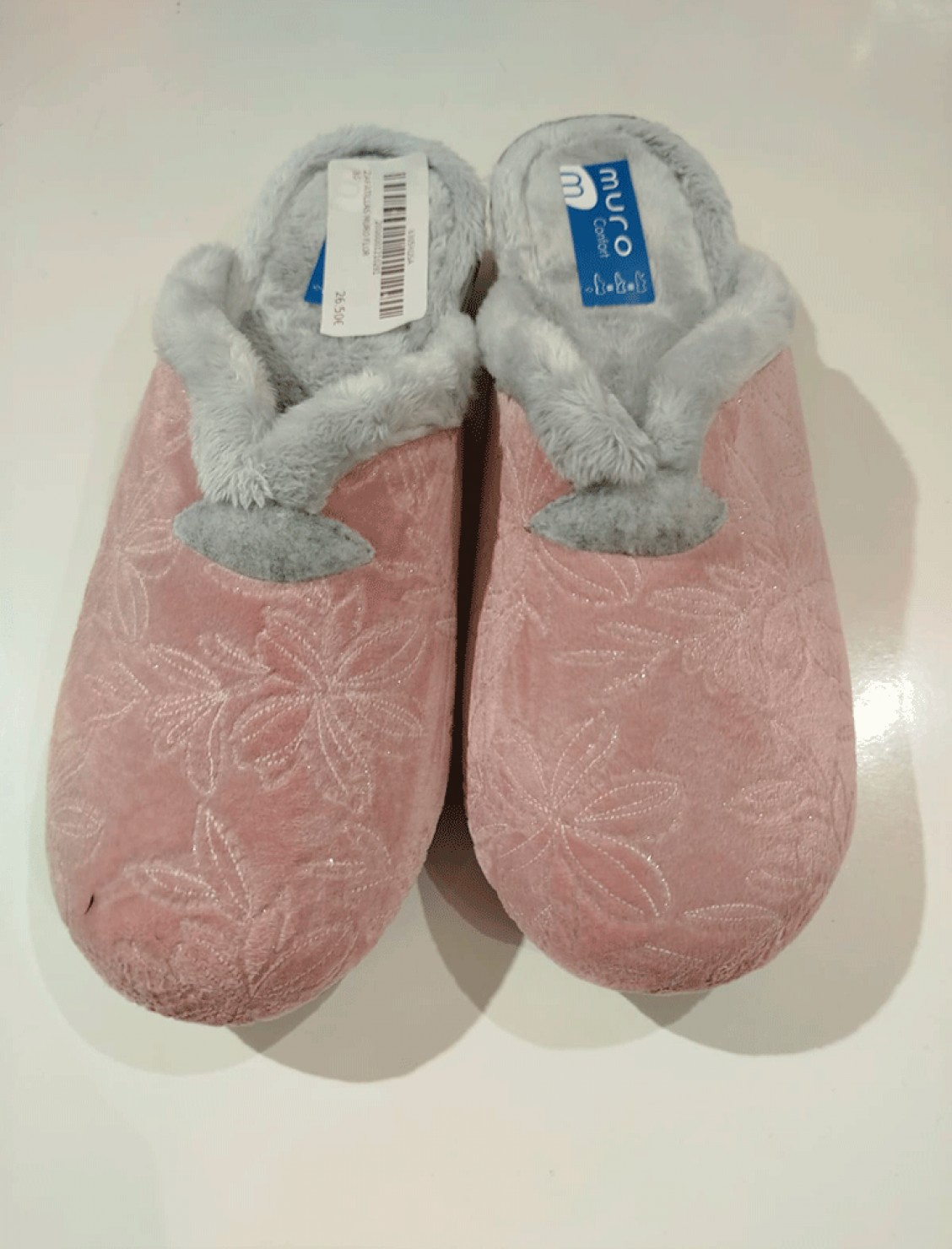 Zapatillas muro con diseño floreado en rosa con brillos.